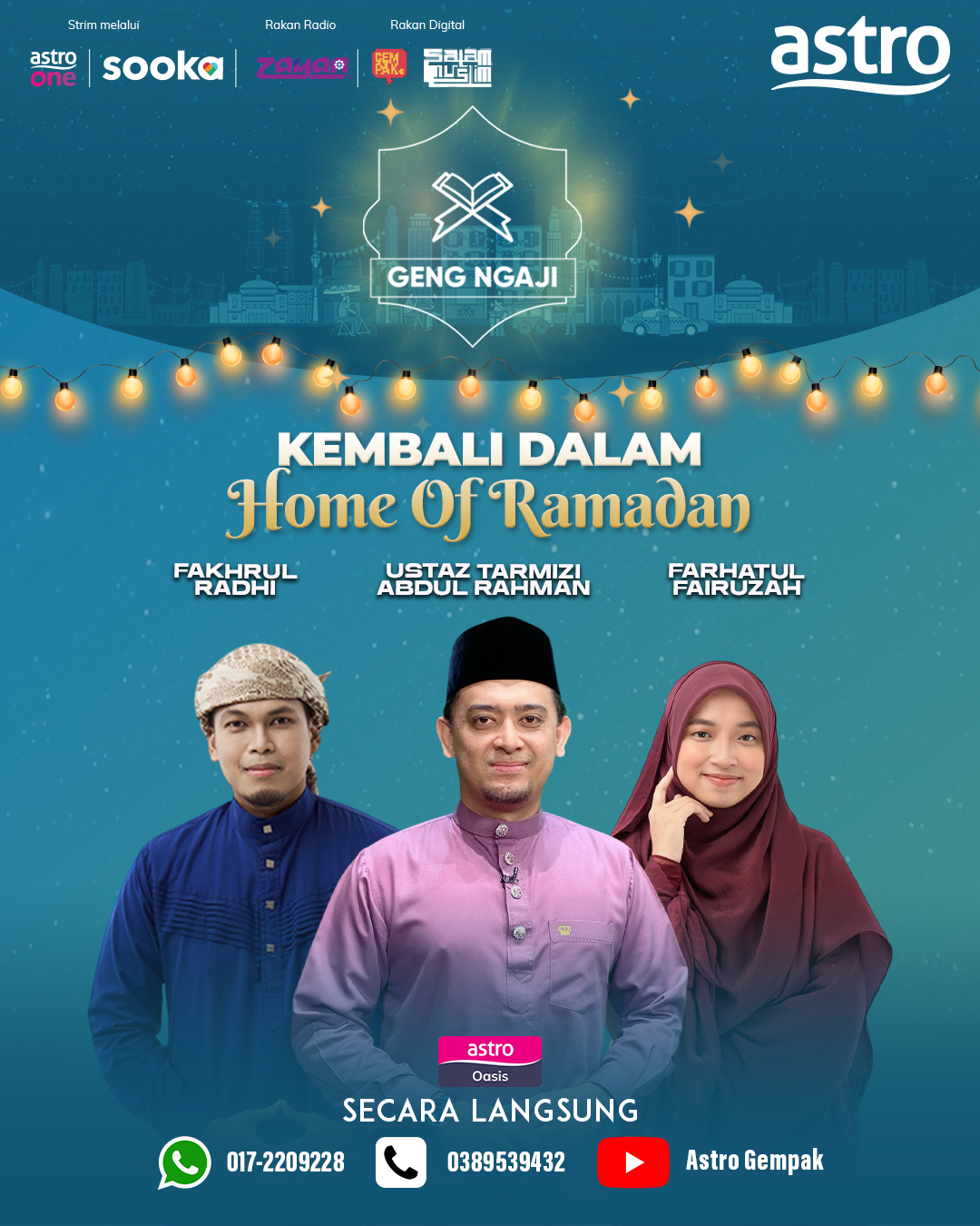 Hiasi Ramadan anda dengan Home of Ramadan di Astro Oasis! Saksikan program langsung 3 jam setiap Isnin-Jumaat, jam 5 petang hingga 8 malam yang sarat ilmu. Jangan lepaskan Geng Ngaji bersama Trio Sebak: Ustaz Fakhrul Radhi, Ustaz Tarmizi & Ustazah Farhatul. Nikmati bimbingan tajwid, tadabbur, masakan & soal jawab interaktif. Jom perbaiki bacaan & berinteraksi secara langsung buat seisi keluarga!